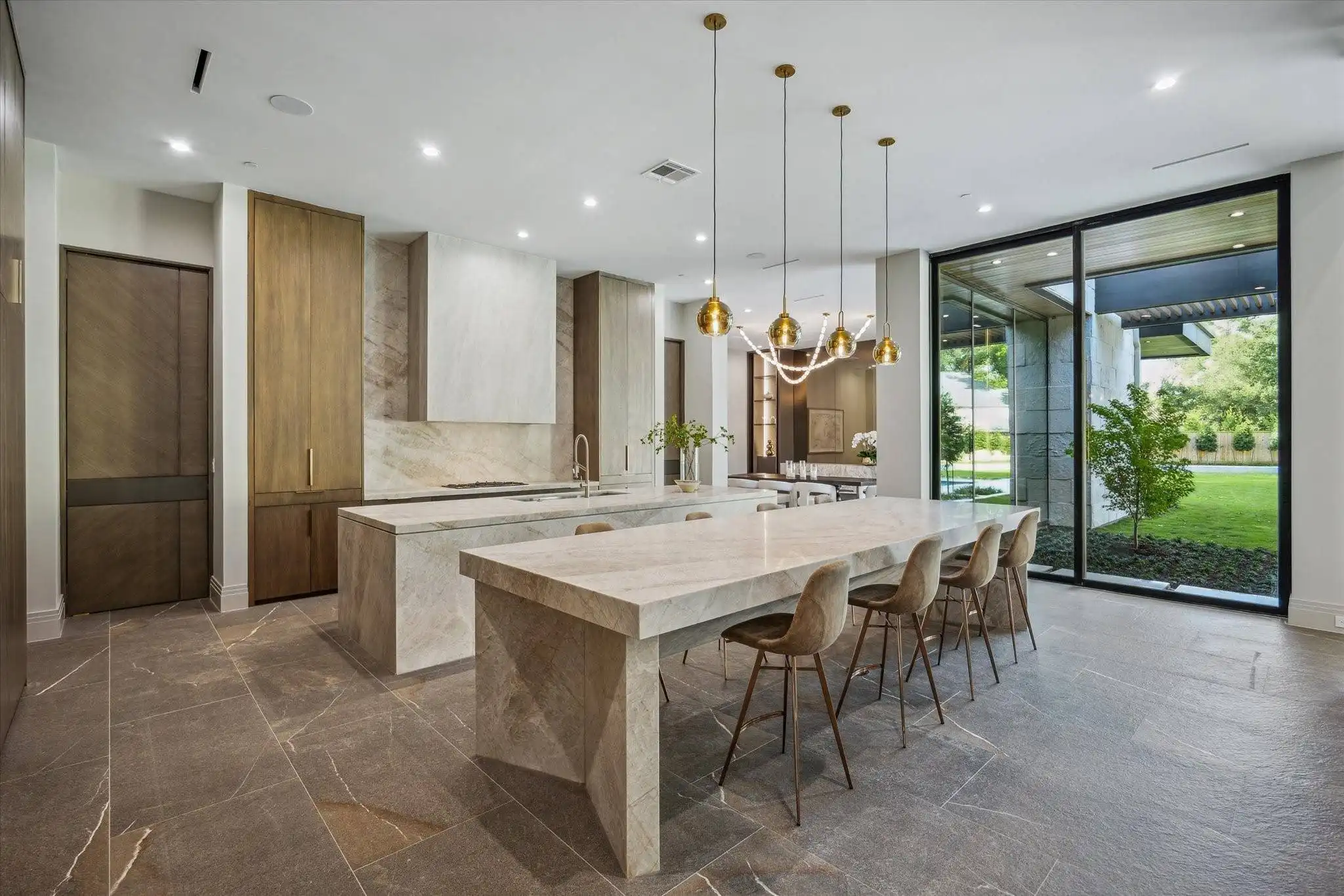 At 9010 Memorial Drive, the focus shifts from preparation to connection. The scullery kitchen quietly handles the behind-the-scenes bustle, leaving the central space open for laughter and conversation. It’s easy to imagine a Sunday NFL watch party unfolding here—no clutter in sight, just good food, good company, and the sound of shared excitement echoing from the next room.