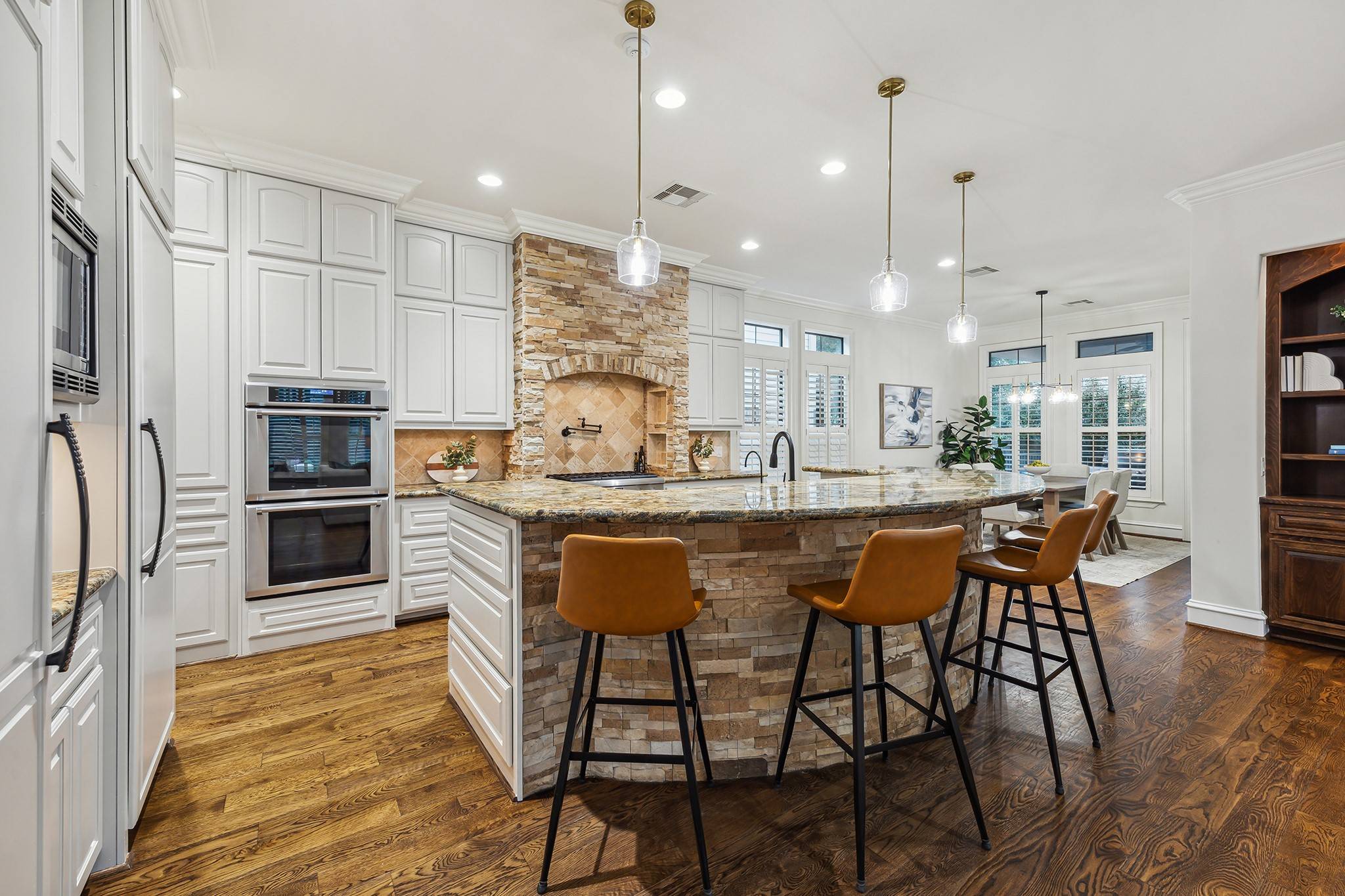 Stunning Bellaire Beauty! 4400 Effie sits gracefully on a corner lot and showcases 4–5 bedrooms and 5 full baths-a rare find in this sought-after Southdale neighborhood. Large windows fill the home with natural light, highlighting the warm hardwood floors and custom plantation shutters throughout. The chef's kitchen impresses with Thermador appliances, a pot filler, large island, beautiful countertops, & custom cabinetry, all accented by gorgeous lighting fixtures. The primary retreat is a luxurious haven with stunning ceiling details, a spa-like bath, & a spacious custom-fitted closet. Thoughtful updates include a new roof (2024), tankless water heater (2024), fresh interior & exterior paint (2025). Enjoy the beautifully landscaped grounds and unmatched location - zoned to Horn Elementary, (few steps away), Bellaire High School, a short walk to Evergreen Park, Evelyn's Park, & minutes from the Medical Center, Downtown, & the Galleria. A true Inner Loop charmer. Never flooded!